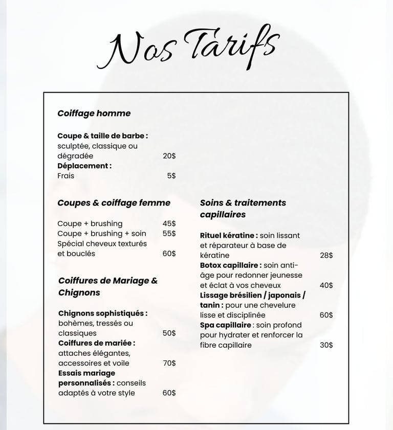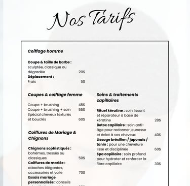 Nous offrons des services de coiffure personnalisés pour hommes et femmes, alliant expertise et passion pour sublimer votre look.
